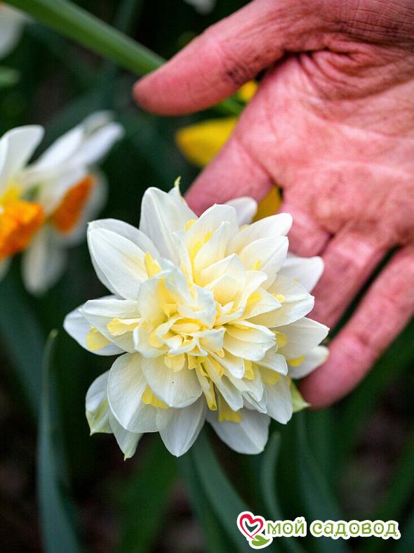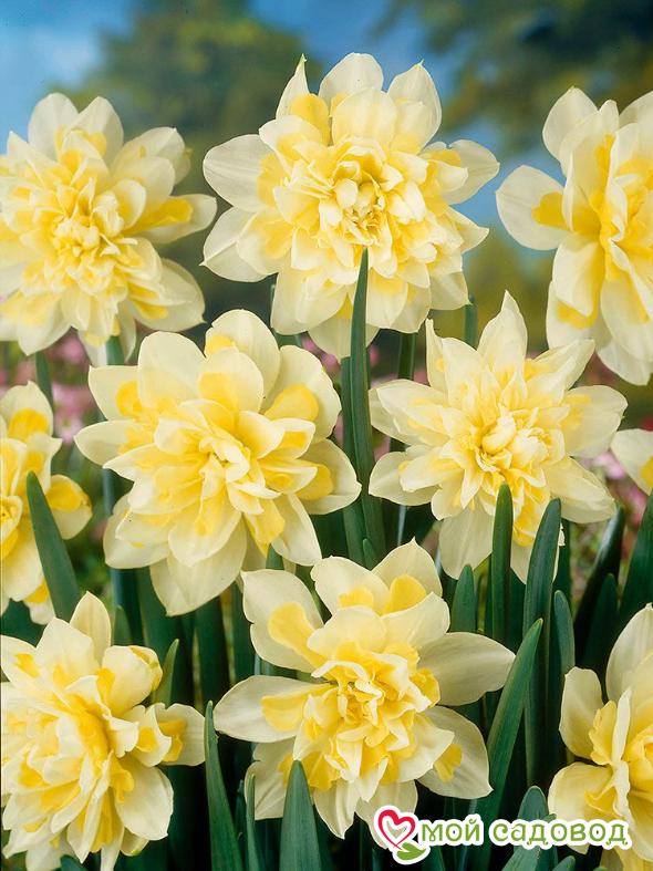 Нарцисс «Ирэн Копленд» — махровый, многолетний сорт. Луковицы нарциссов среднего размера, отлично приживаются при любых климатических условиях. Цветки с очень приятным ароматом, крупного размера, многослойные, бело-жёлтого цвета. Растение неприхотливое в выращивании, стебель прямостоячий, крепкий. Махровые нарциссы пользуются особой популярностью в декоративном садоводстве, их используют в озеленении, выращивают в открытом грунте на клумбах.
